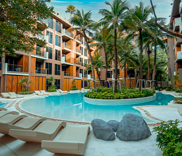 Комфортный отдых прямо у лагуны с бирюзовой водой и белым песчаным пляжем. Отель включает в себя полностью оборудованные номера и семейные комнаты