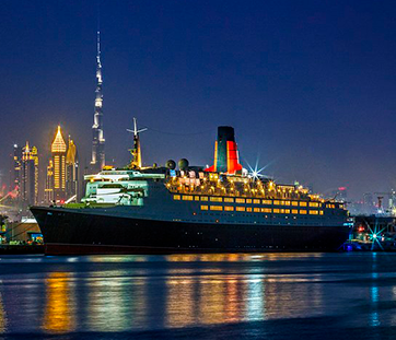 Остановитесь на борту легендарного океанского лайнера, превращённого в отель — Queen Elizabeth 2. Отель расположен на воде, в порту Мина Рашид в Дубае, всего в нескольких минутах от центра и главных достопримечательностей.